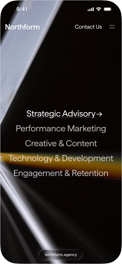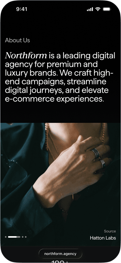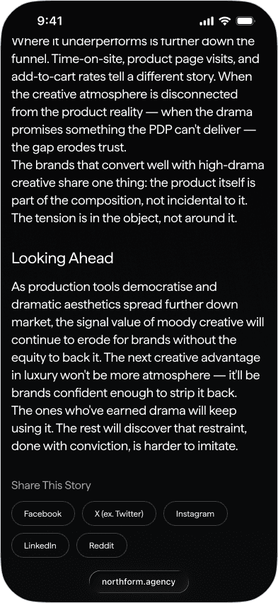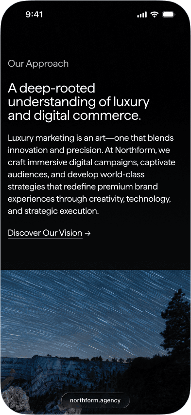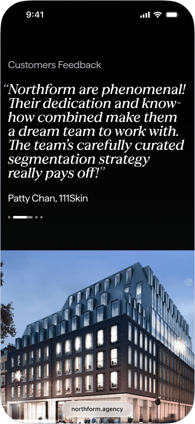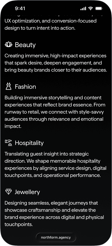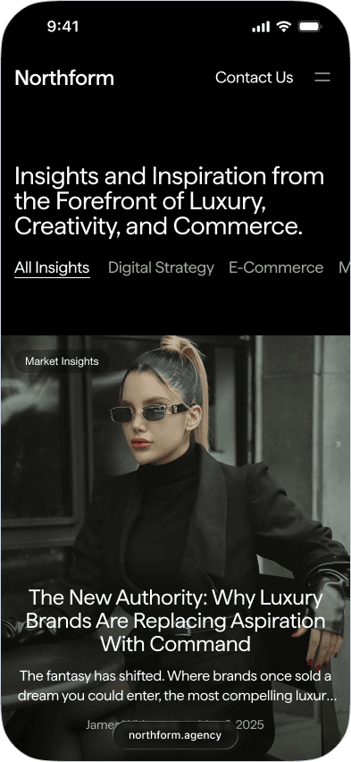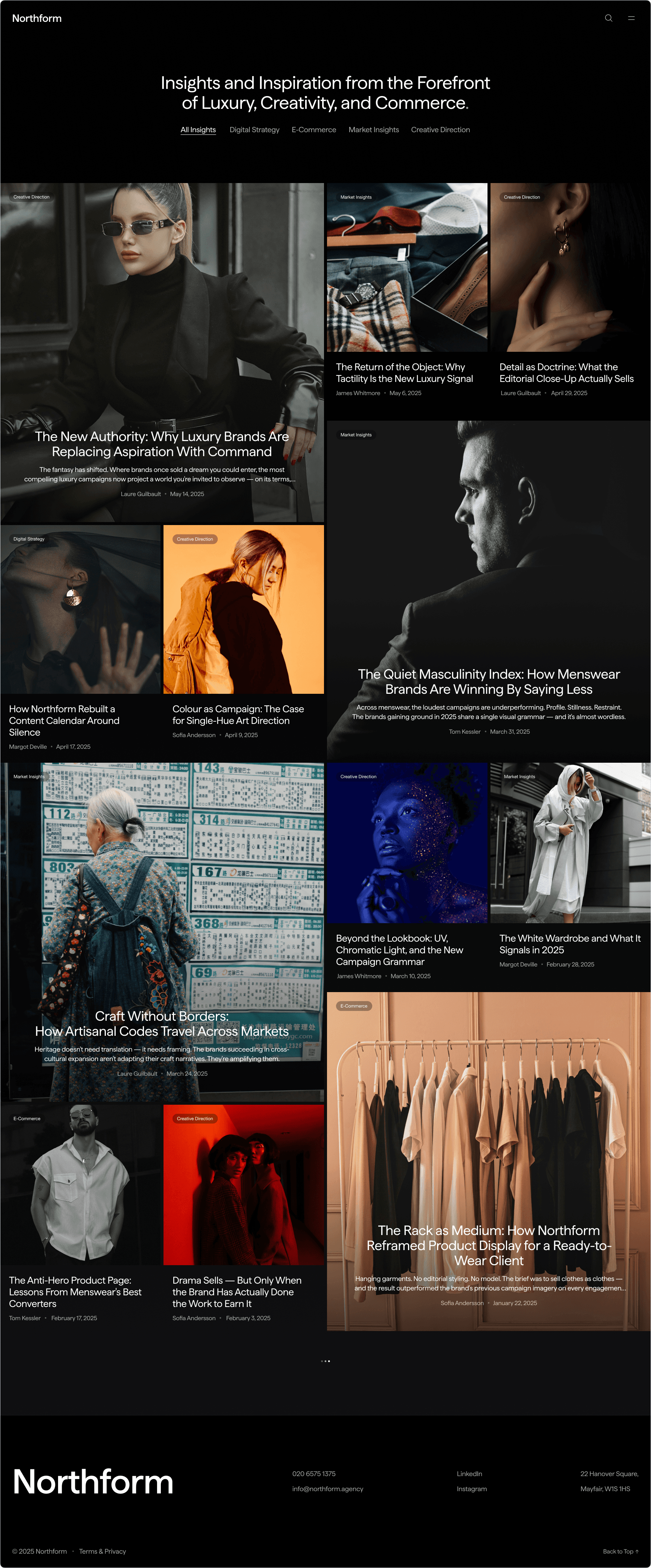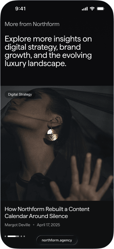 Northform is a digital agency working with premium and luxury brands — Wandler, Frescobol Carioca, Joseph, 111Skin, Aspinal of London, Molton Brown, DITA. The kind of clients who expect the agency's own presence to match the standard of the work it delivers for them.