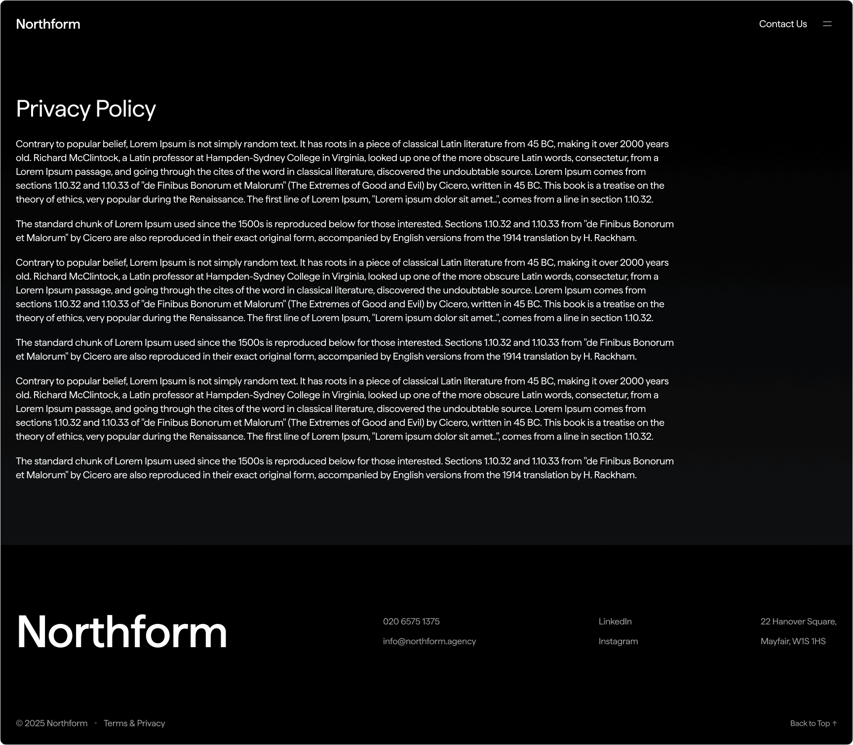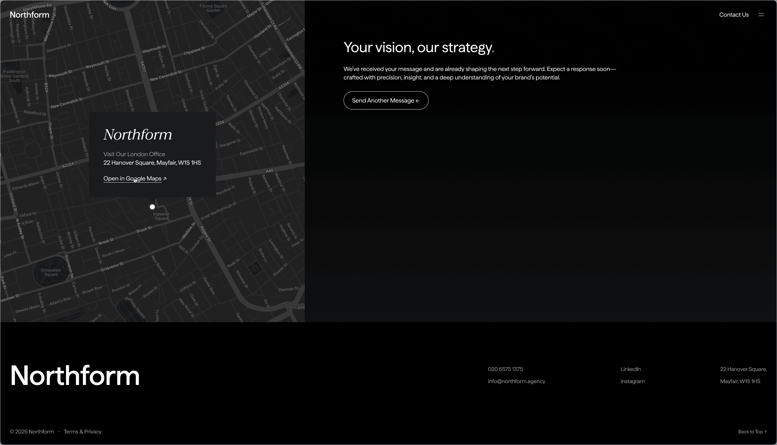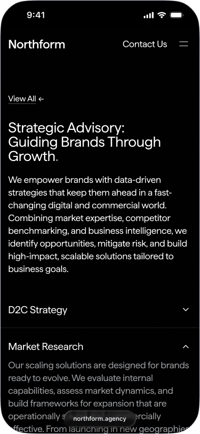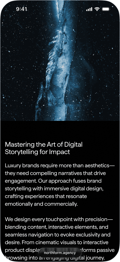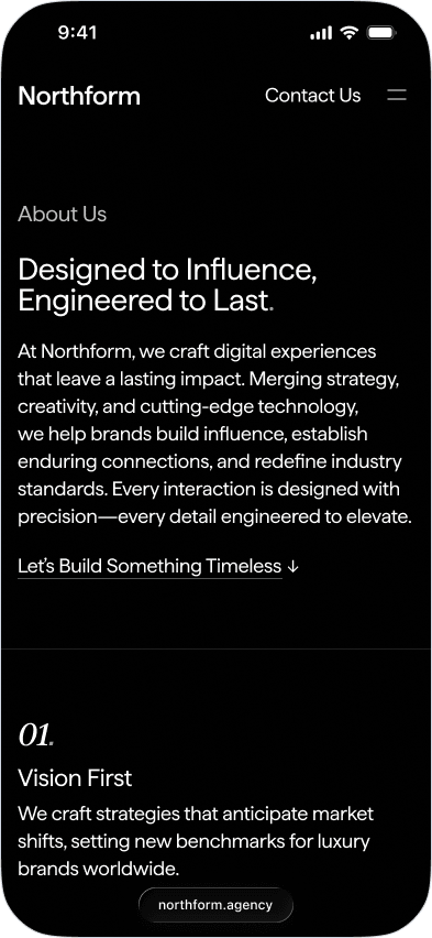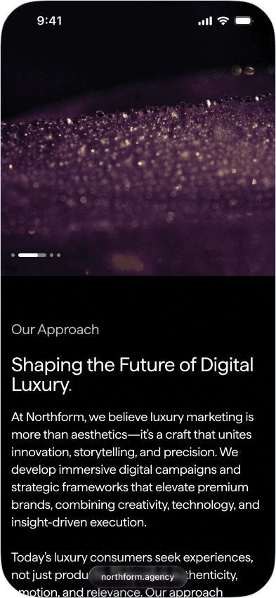Northform is a digital agency working with premium and luxury brands — Wandler, Frescobol Carioca, Joseph, 111Skin, Aspinal of London, Molton Brown, DITA. The kind of clients who expect the agency's own presence to match the standard of the work it delivers for them.