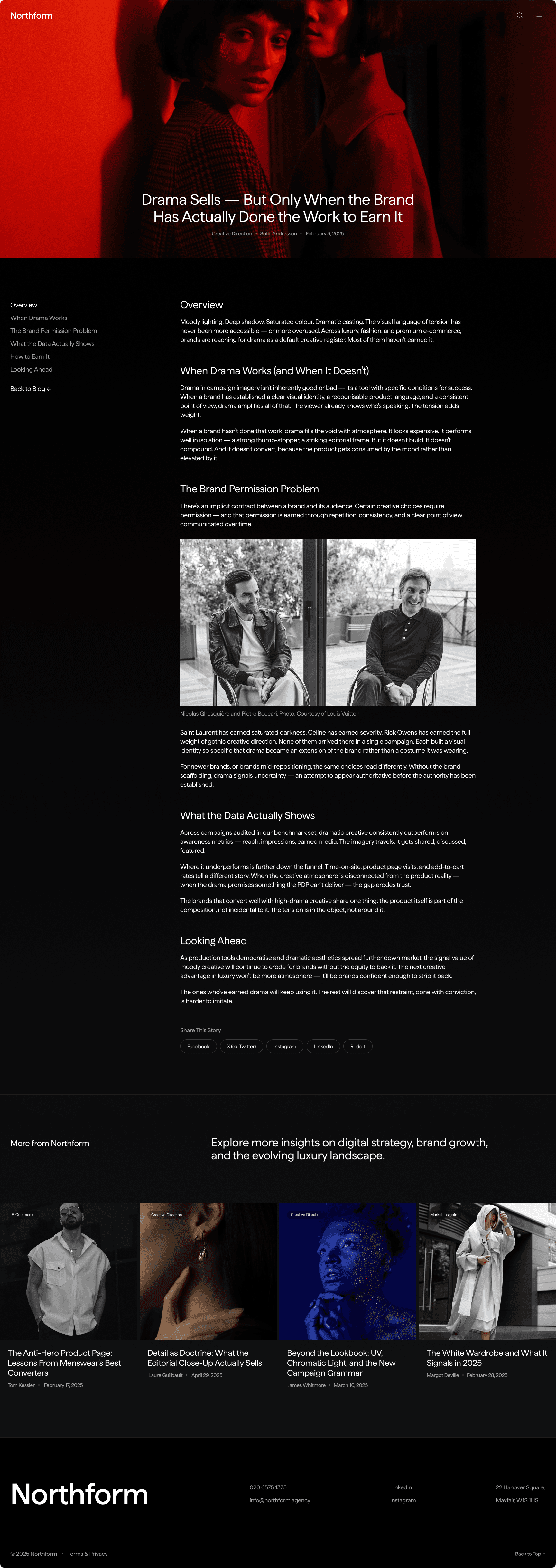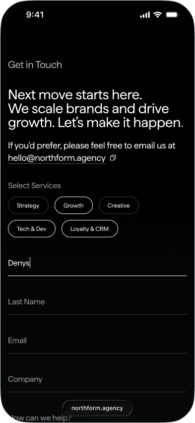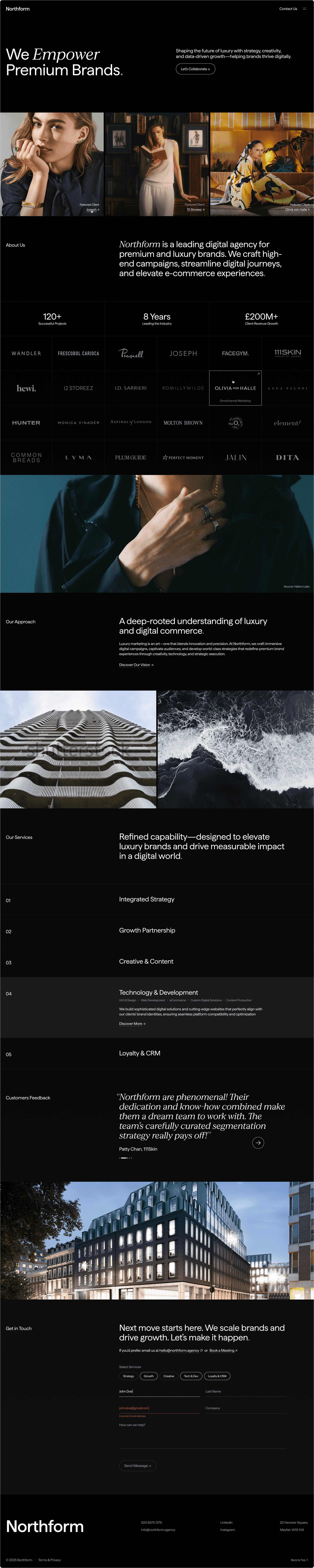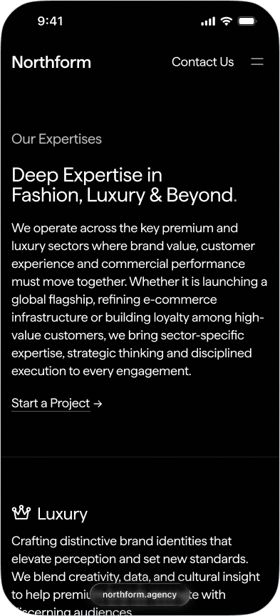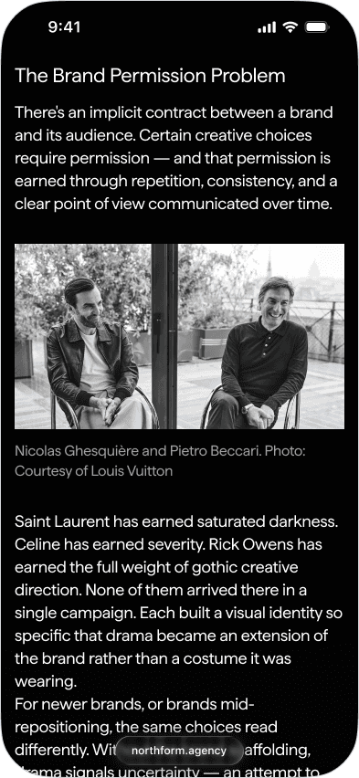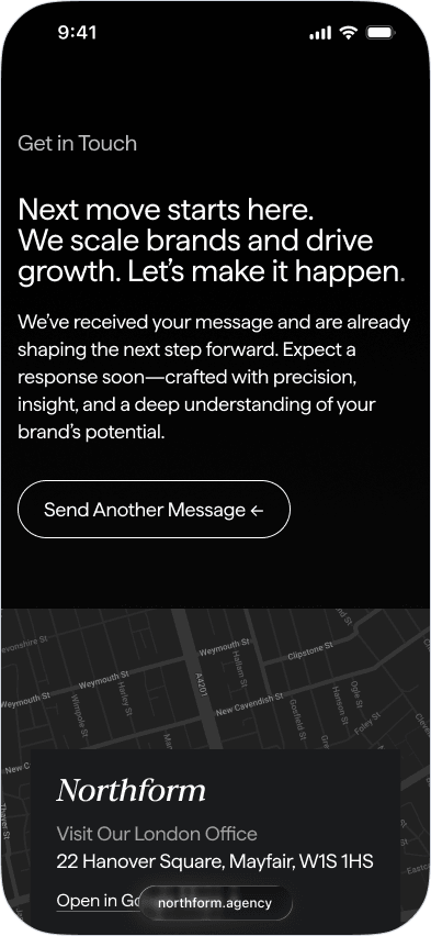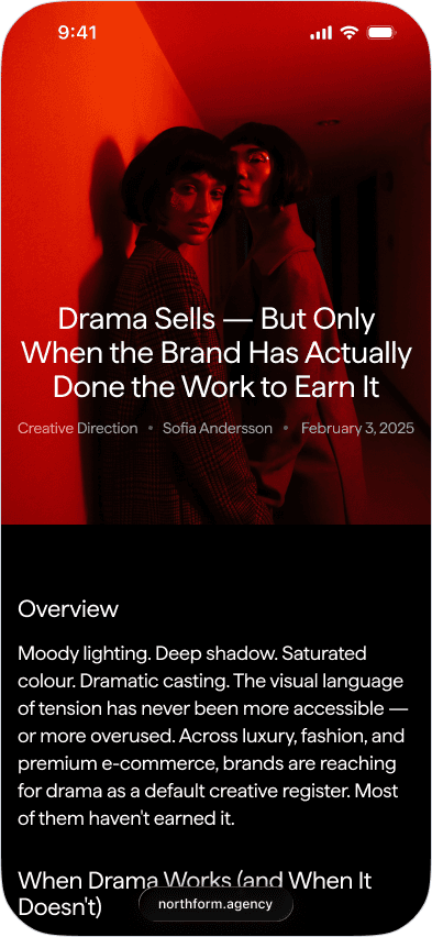 Northform is a digital agency working with premium and luxury brands — Wandler, Frescobol Carioca, Joseph, 111Skin, Aspinal of London, Molton Brown, DITA. The kind of clients who expect the agency's own presence to match the standard of the work it delivers for them.