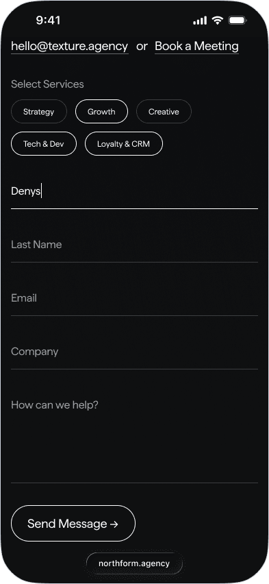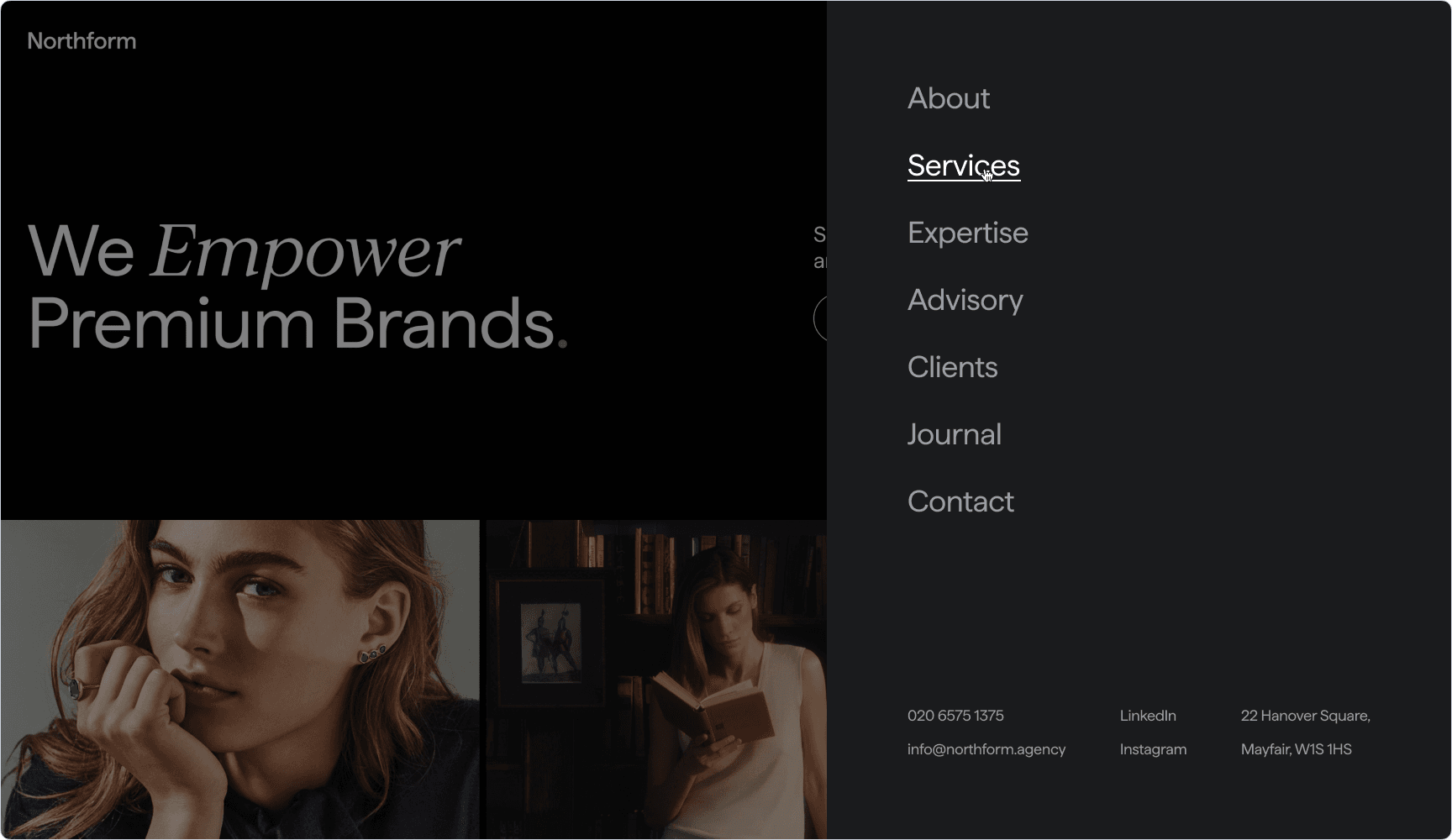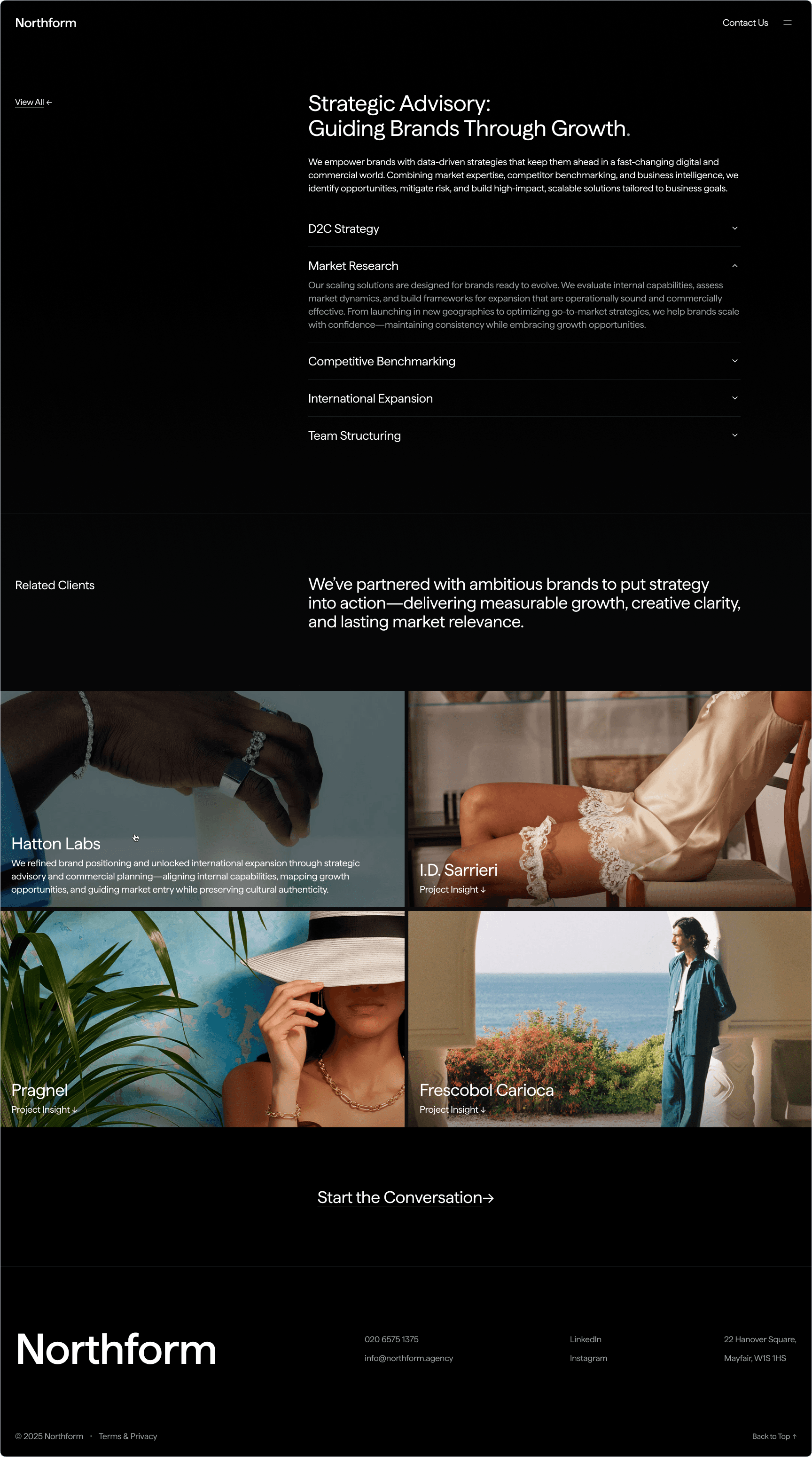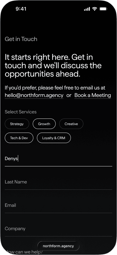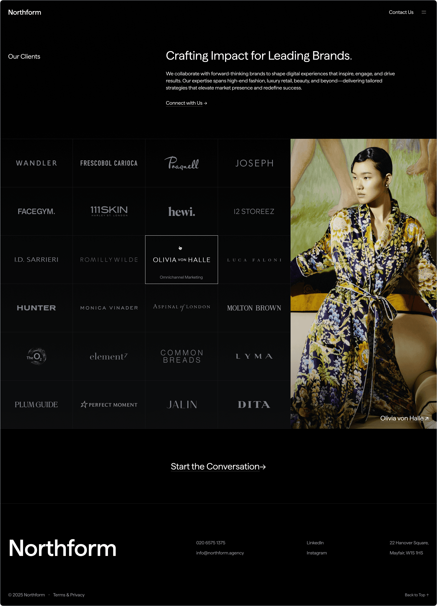 Northform is a digital agency working with premium and luxury brands — Wandler, Frescobol Carioca, Joseph, 111Skin, Aspinal of London, Molton Brown, DITA. The kind of clients who expect the agency's own presence to match the standard of the work it delivers for them.
