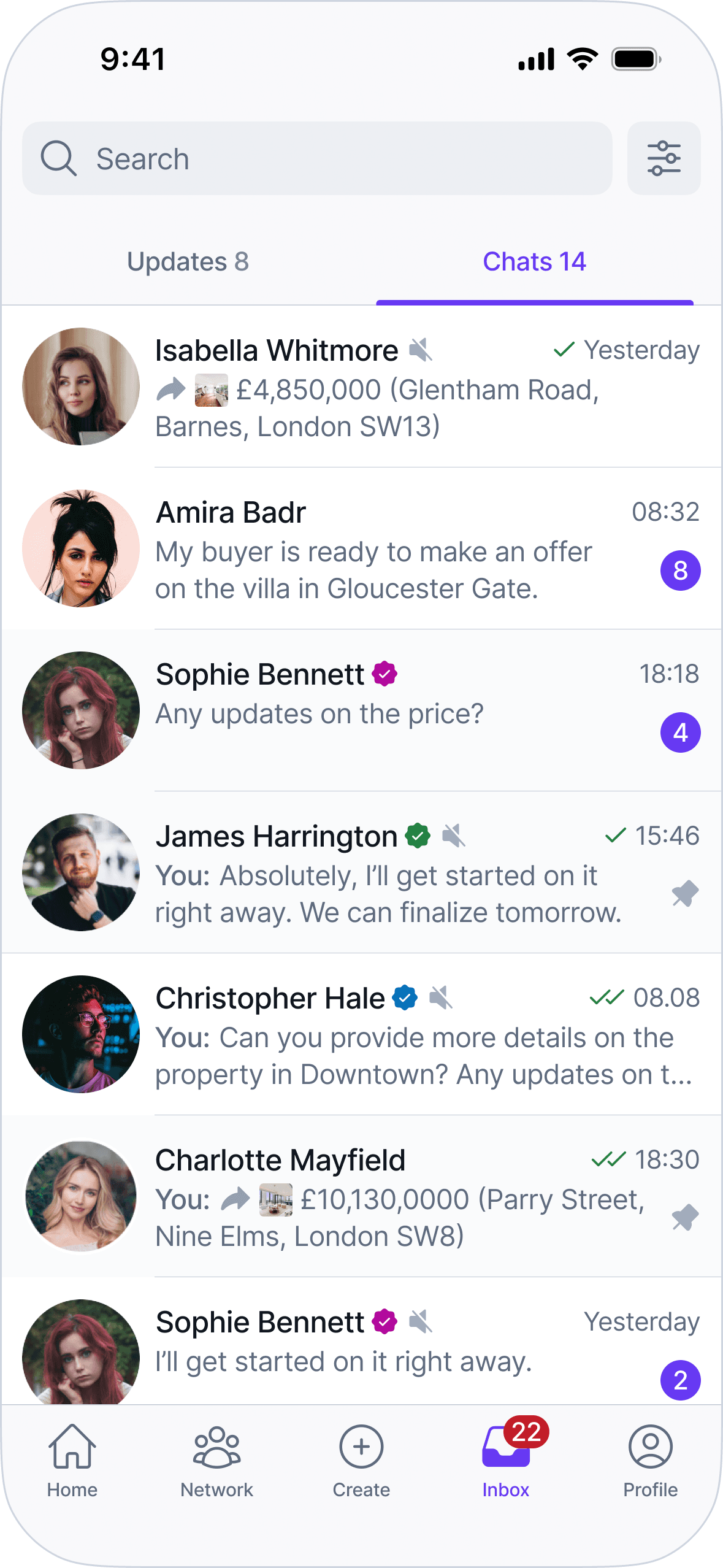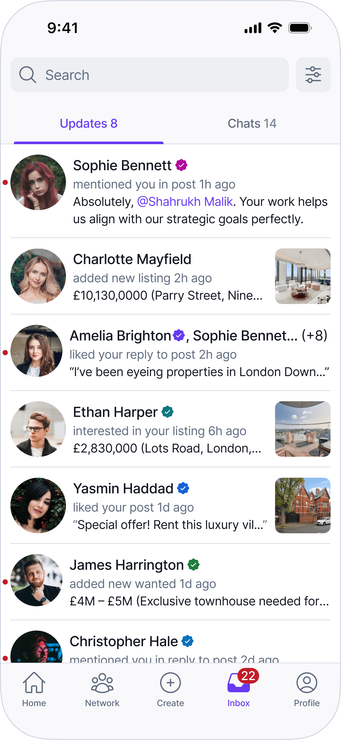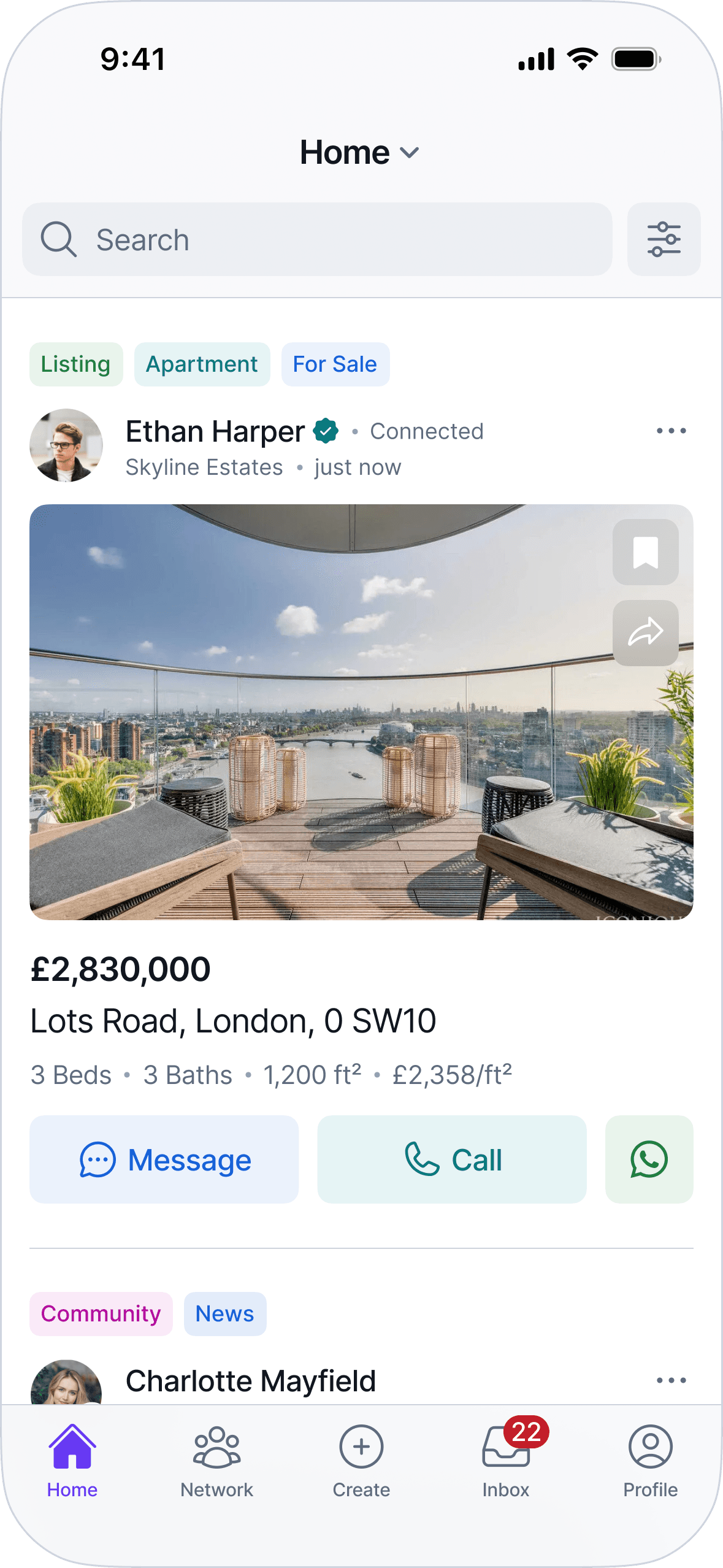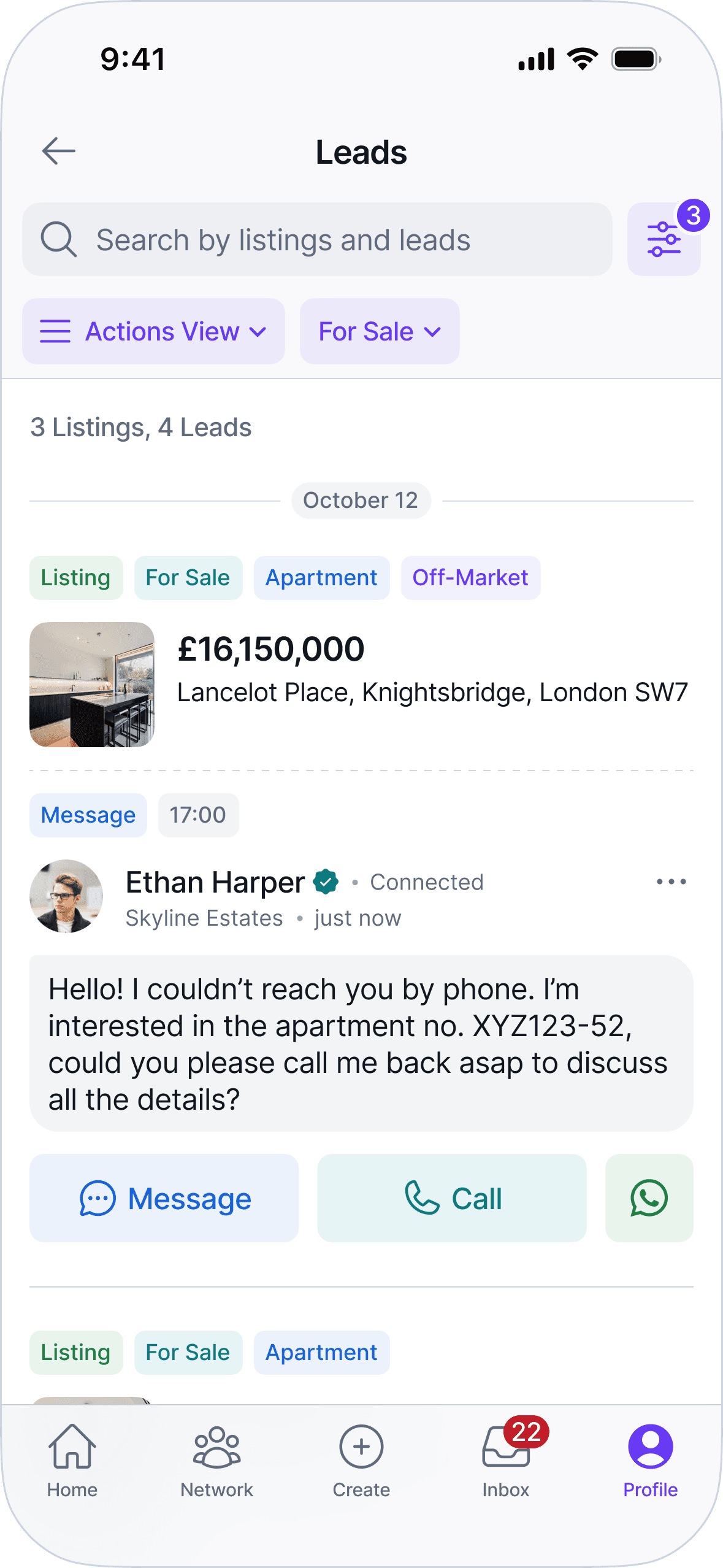 The UI prioritizes clarity, predictable patterns, and information density to support fast scanning and comparison. Layouts, navigation, and components are designed to scale across listings, profiles, messaging, and network interactions without introducing special cases