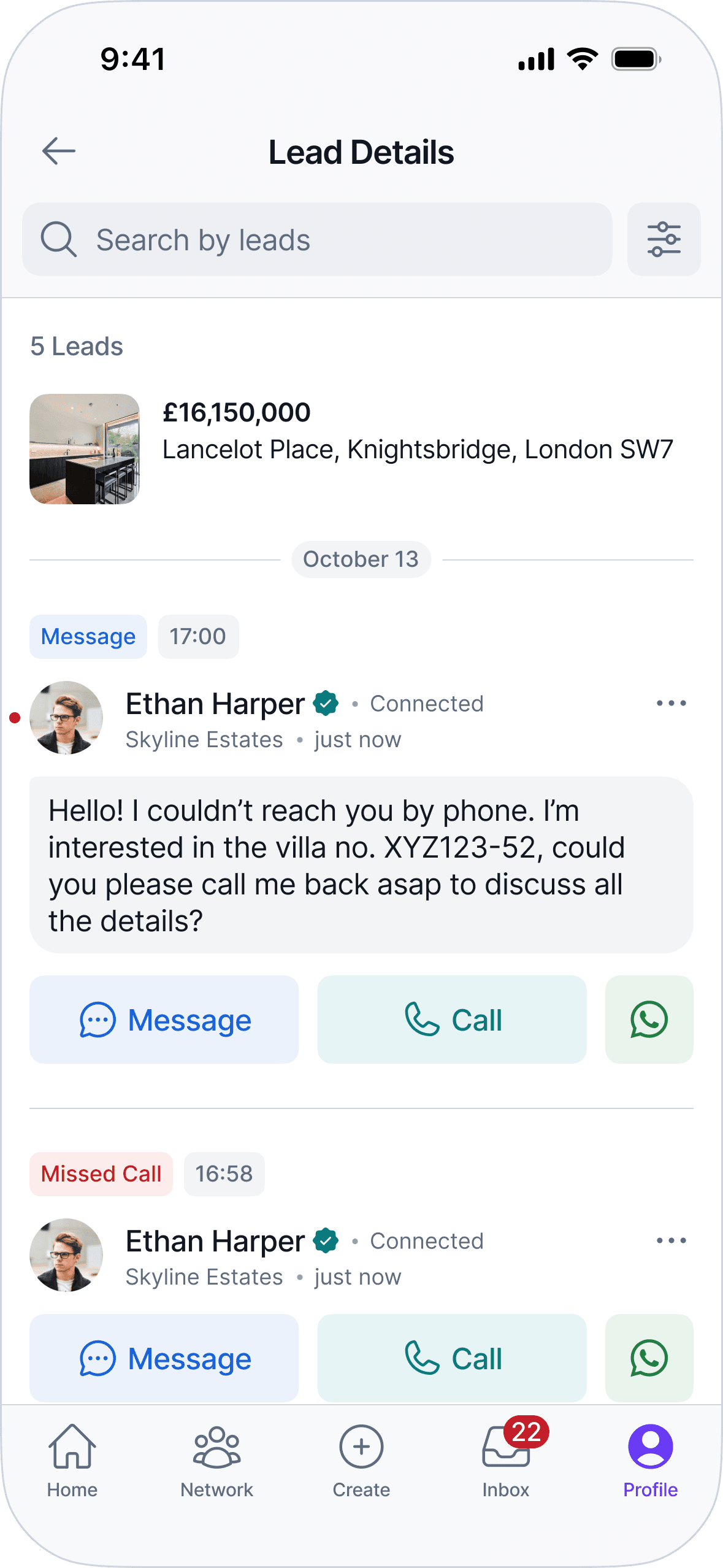 Profile Tab -> Leads